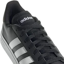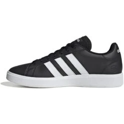 Ohne diesen Grand Court ist deine Sneakersammlung nicht komplett. Der Schuh hat ein komplettes Makeover verpasst bekommen, darunter eine robuste Cupsohle für optimalen Grip bei nassem Untergrund. Und das Obermaterial aus weichem Synthetikleder sorgt mit den klassischen 3-Streifen für authentischen adidas Vibe. Mit einem Recycling-Anteil von mindestens 50 % im Obermaterial ist dieses Produkt nur eine unserer Lösungen im Kampf gegen Plastikmüll. • Reguläre Passform • Schnürsenkel • Synthetikfutter • Gummi-Cupsohle