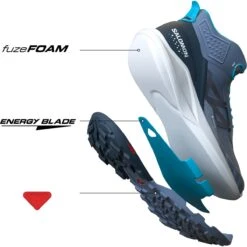 - Unser Fuze Surge-Verbundschaum überzeugt durch hervorragende Energierückführung und Dämpfung, basierend auf unserer langjährigen Trailrunning-Erfahrung.